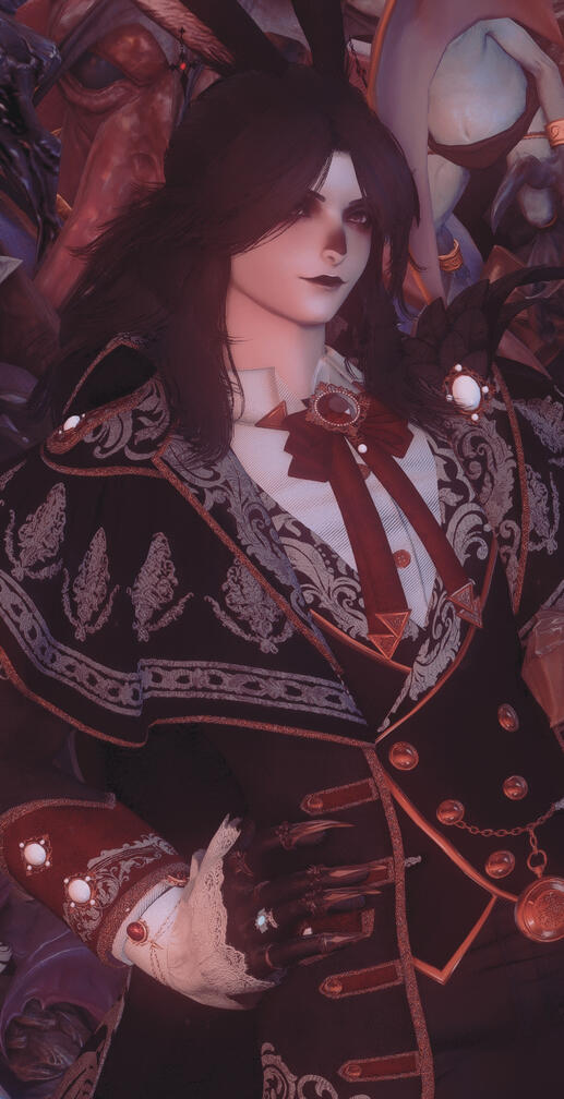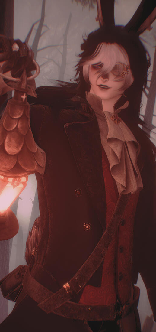 New residents of the Goblet will occasionally ask about the presence of a manor lying on the district's outskirts, secluded by imposing gates and a crumbling facade. Once the sight of many a gala held by an aging adventurer and wannabe Ul'dahn nobleman, it's now under the care of Bram, his ward and inheritor, who he adopted under hazy circumstances. This is all he'll say about his childhood when pressed, other than waxing poetic about his prestigious tutoring in etiquette and academics growing up. In the Viera's mind, his life begins in the mansion's dimly-lit foyer in his early teens.Left to his own devices when not schooled or entertaining his guardian's frequent party guests, Bram developed an intense fascination with Voidsent and all manner of undead and paranormal phenomena soon after settling in Ul'dah. After a chance sighting of flocking ahriman from afar, the boy began to amass a secret collection of occult magazines and writings to memorize in his free time. Ambitions of greatness in the field and the thrill of unlocking the Void's secrets only grew stronger over time, until the adventurer's sudden passing from age-borne health issues.